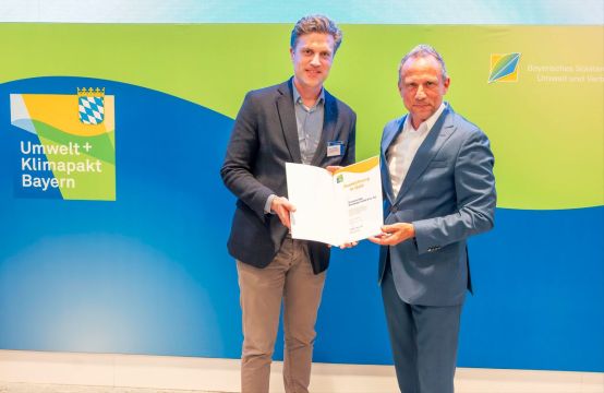 Für den jahrelangen Einsatz und das unermüdliche Bestreben für umwelt- und ressourcenschonendes Arbeiten und Handeln, erhielten wir in diesem Herbst eine besondere Anerkennung von der bayrischen Staatsregierung. In einem feierlichen Akt wurde uns vom Bayrischen Staatsminister für Umwelt und Verbraucherschutz, Thorsten Glauber, die „Auszeichnung in Gold“ überreicht.